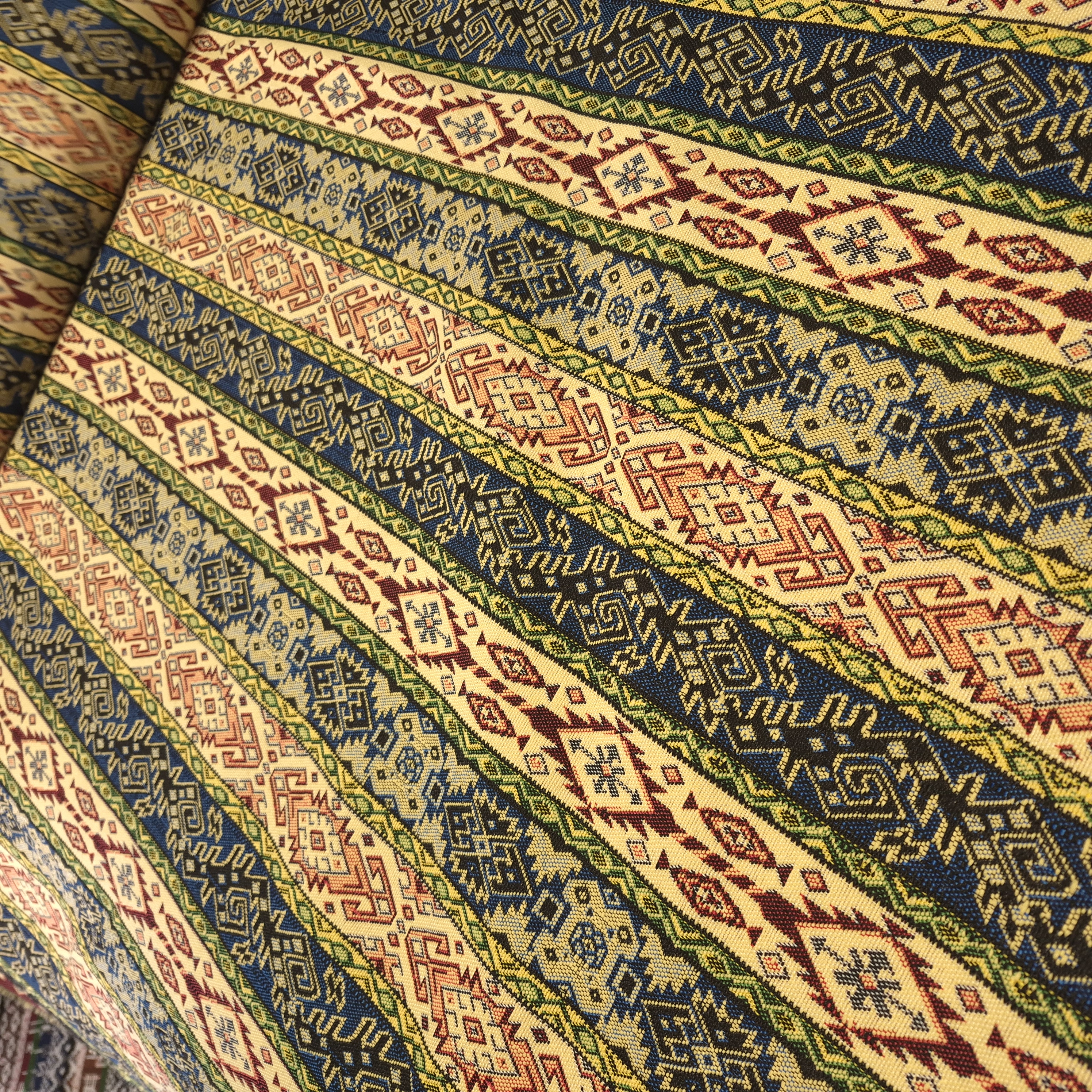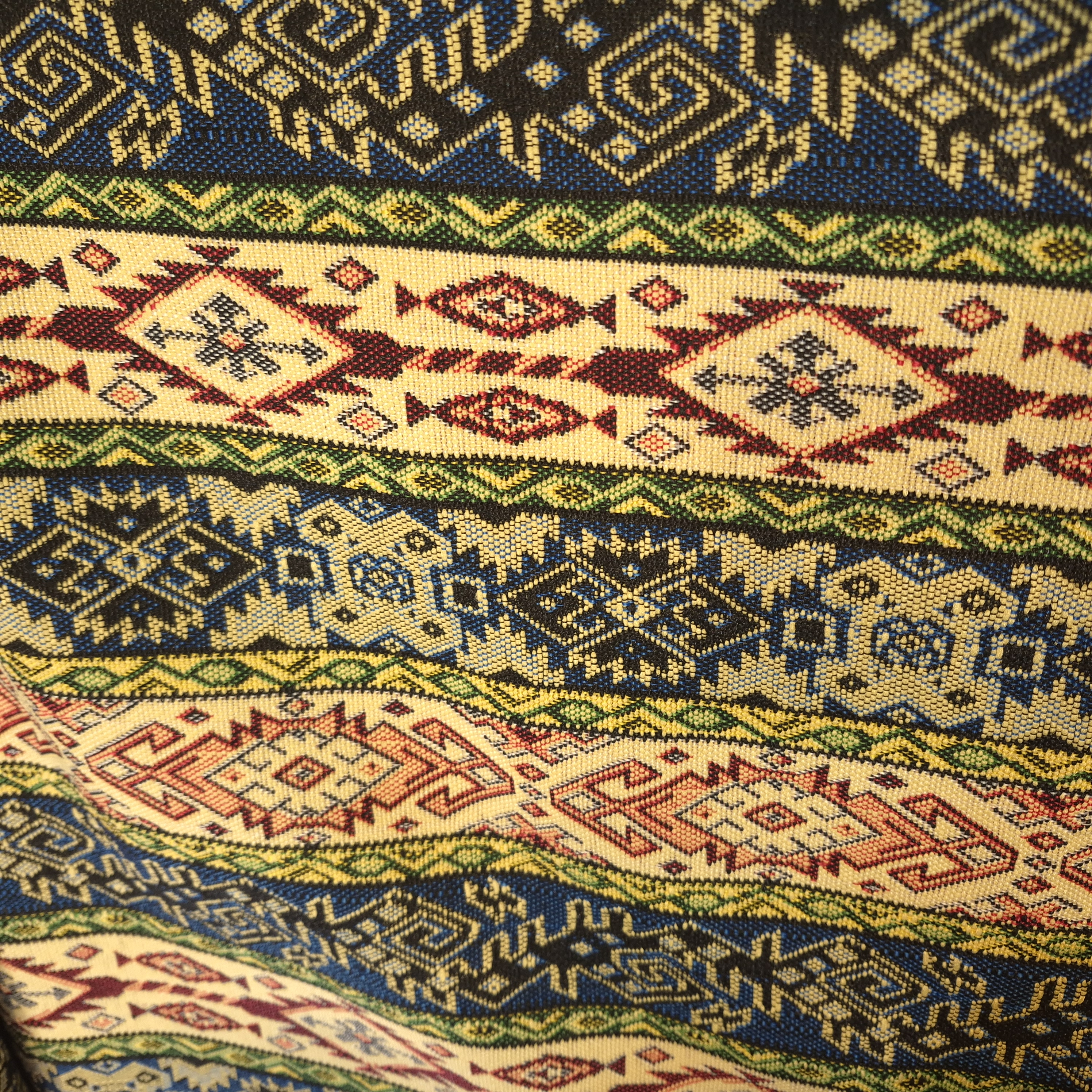 الیاف این پارچه از نوع مصنوعی است که به مجموع آنها ژاکارد گفته می شود. بافت ژاکارد مشابه پشم است و نوع جاجیم های ژاکارد از لحاظ ظاهری شباهت زیادی به جاجیم های سنتی پشمی دارد به این پارچه ها اصطلاحا بدون پرز گفته می شود که این امکان را میدهد که از روی دیگرپارچه نیز استفاده شود. این پارچه دارای درجه کیفی مرغوب و اعلا است و وجود نخ های ضخیم به کار رفته در آن باعث ماندگاری و سنگینی پارچه شده است