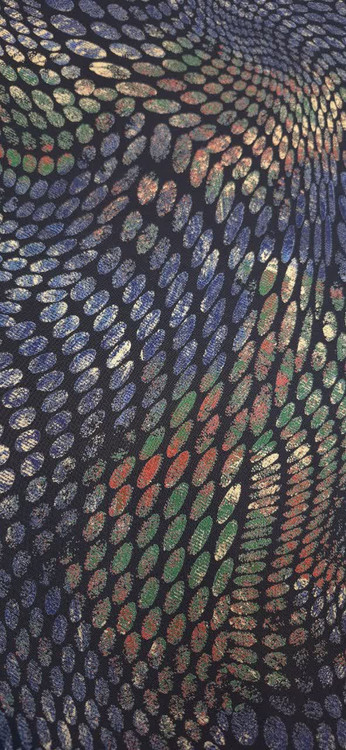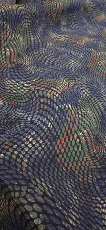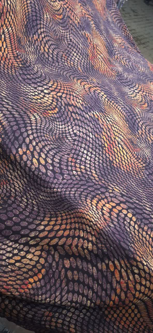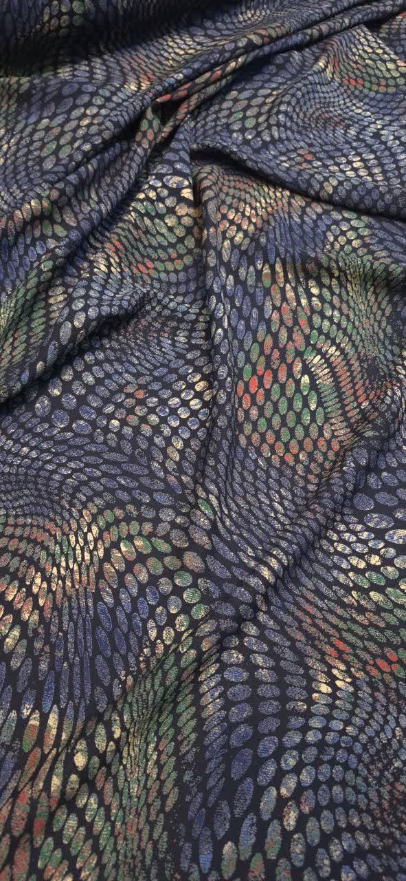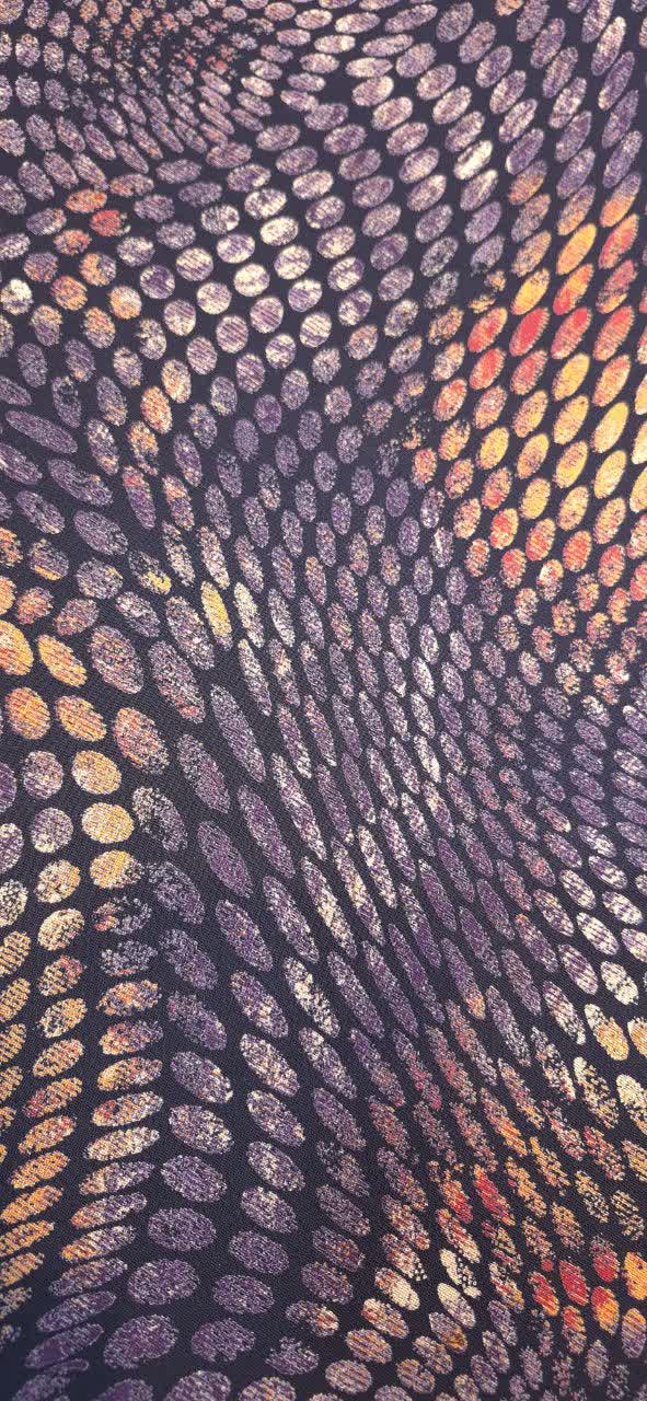 طرحهای موجدار خاص (Abstract Swirls): (تصاویر طرحهای قطرهای موجدار) این طرحها با ایجاد توهم بصری حرکت و عمق (3D)، ظاهری مدرن و هنری به پارچه میبخشند و برای دوختهای غیررسمی و فشن مناسب هستند.
