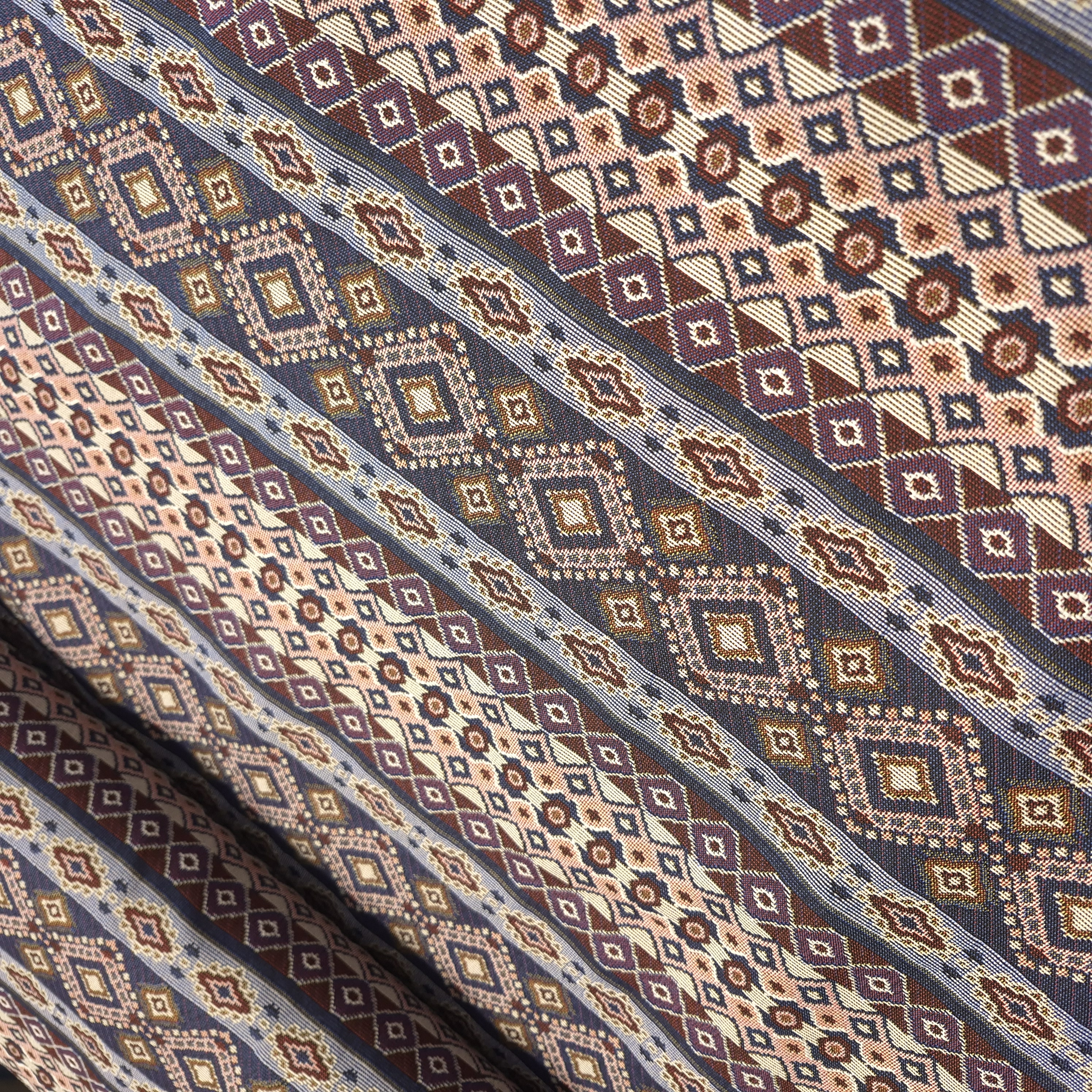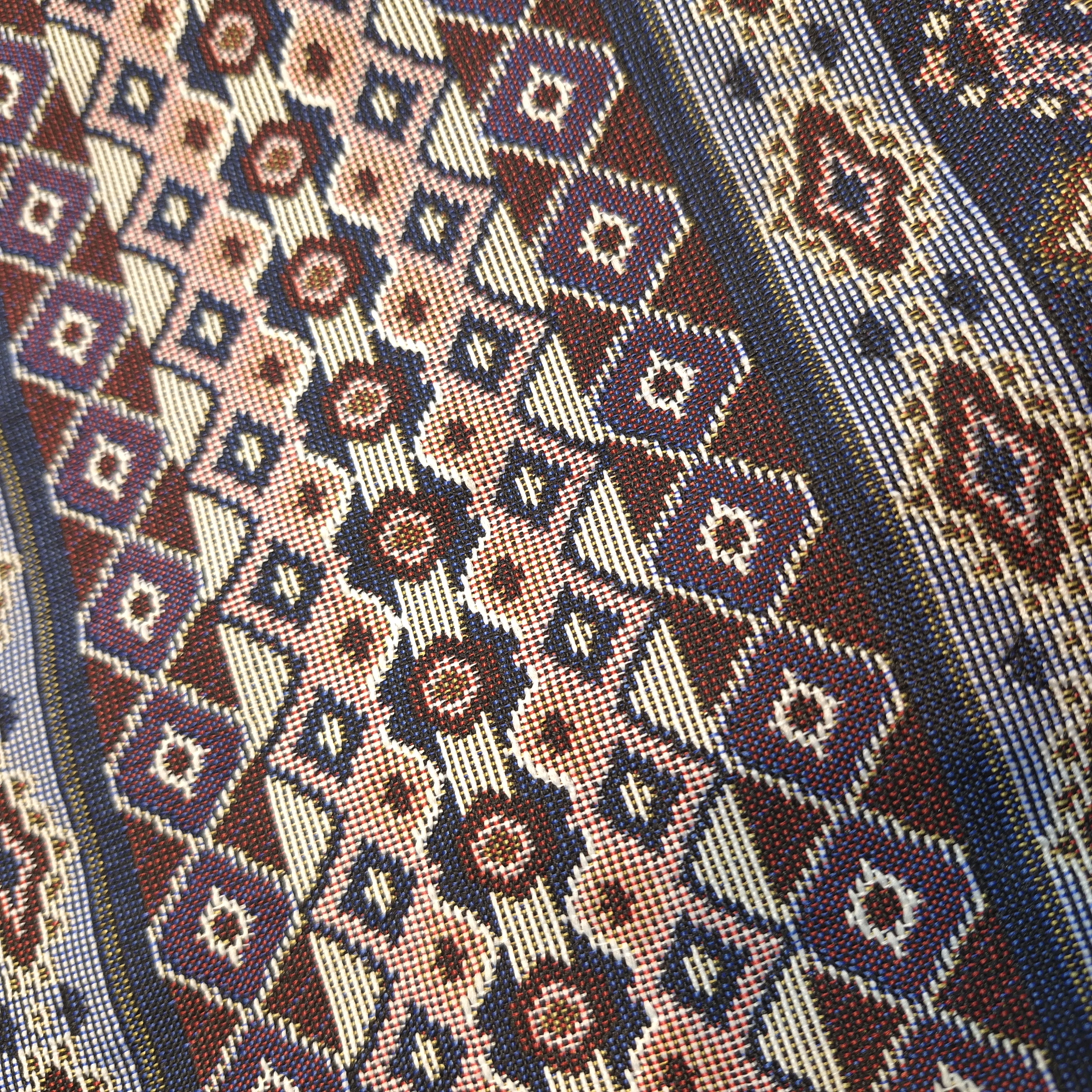 نقشهای اصیل و هندسی: طرحهای برجستهی این پارچه برگرفته از نقوش سنتی عشایر و اقوام ایرانی است. الگوهای لوزی، ستارهها، و موتیفهای باستانی، عمق و هویتی خاص به آن میبخشند.