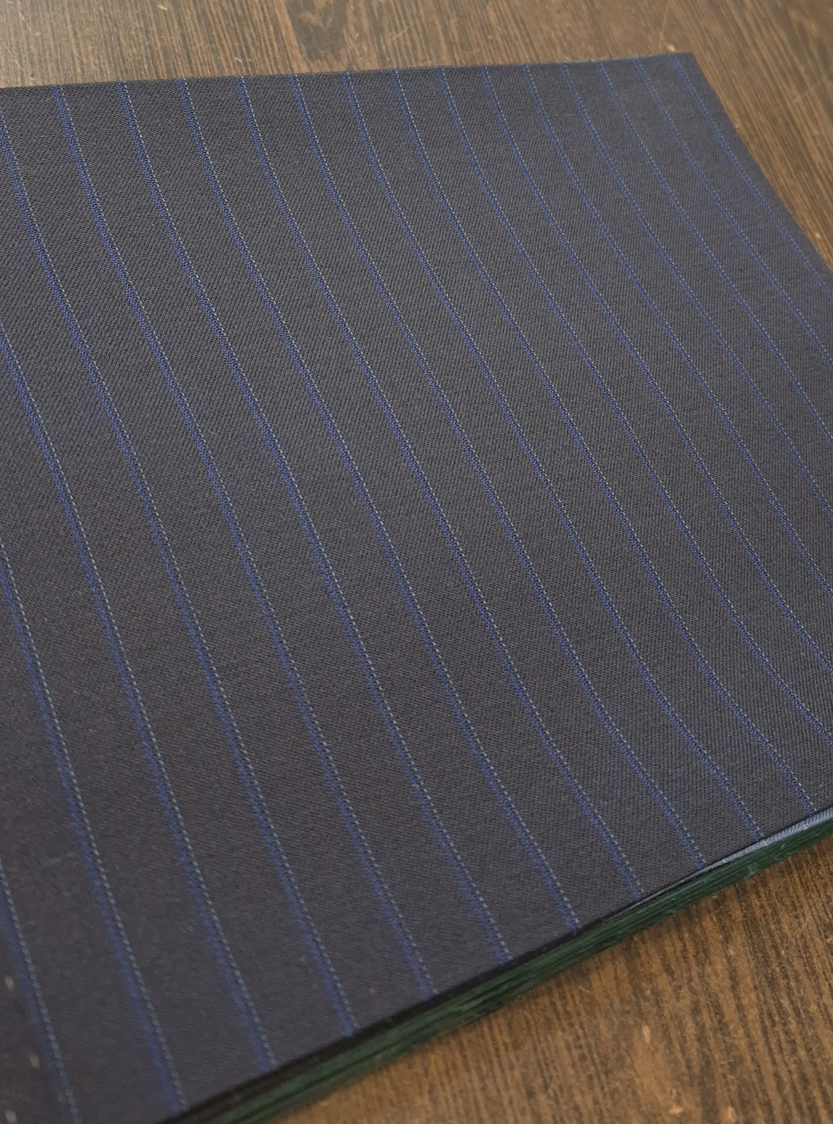 فاستونی دیپلمات سلکا مطهری رنگ زمینه سرمه ای با راه آبی رنگ و فاصله یک سانت قواره ۱/۳۰سانتیمتری مناسب جهت دوخت شلوار مردانه