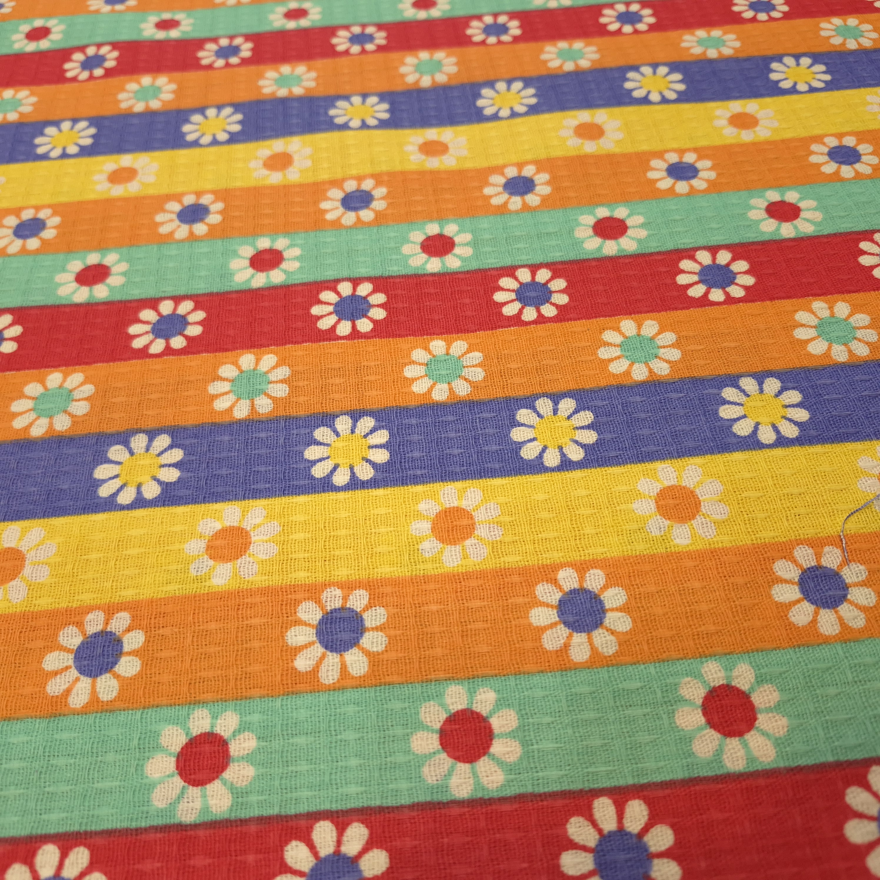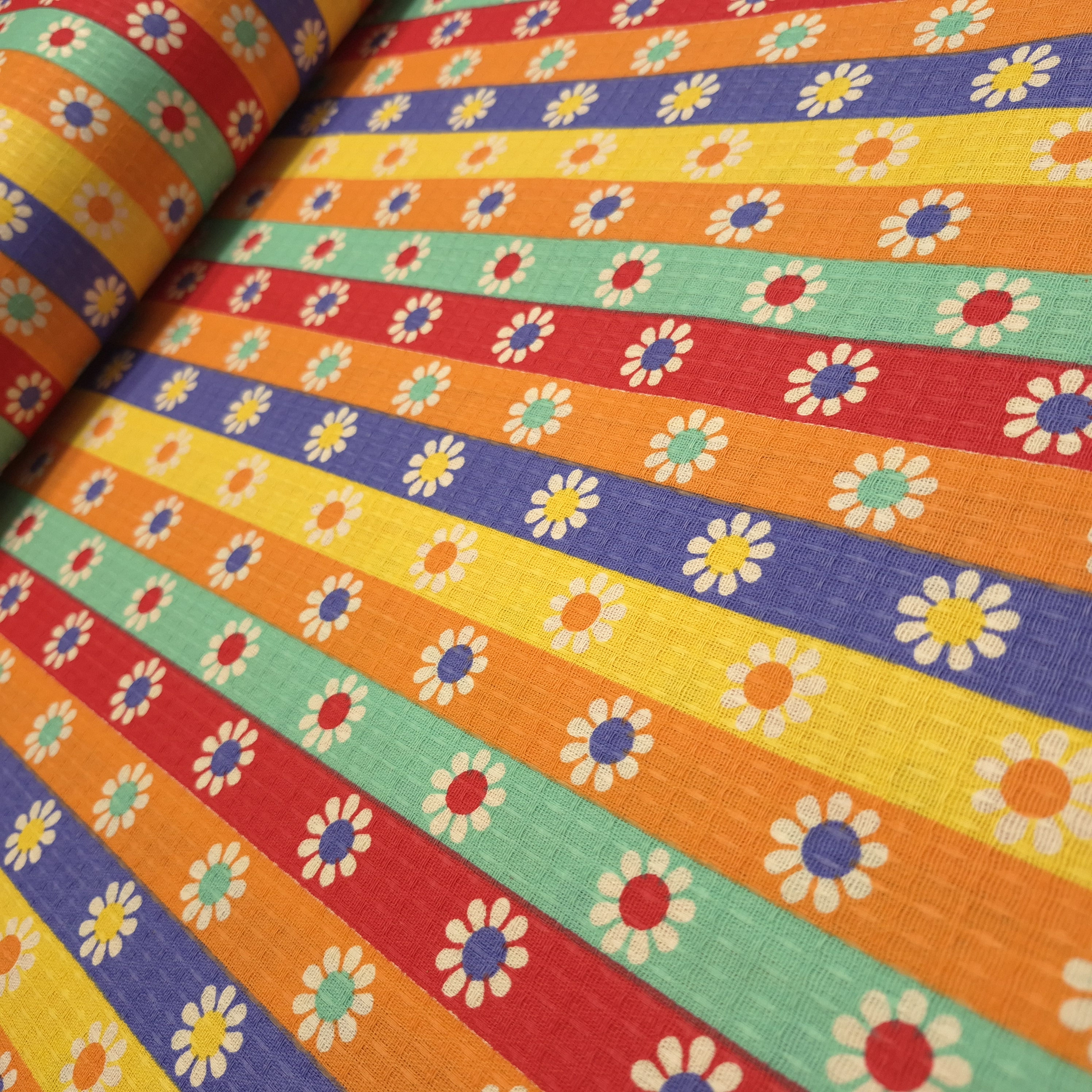 پارچه مخصوص دستمال سفره و سرویس آشپزخانه آنتیک با طرح گل و خطوط موازی و بافتی محکم و جذب بالا، برای دوخت دستمال، پیشبند و سایر لوازم آشپزخانه بسیار کاربردی است.