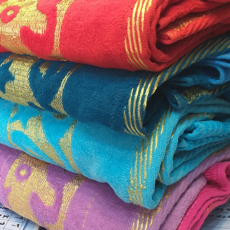 ابعاد:حوله نیم حمام ۱۲۵ × ۷۵ سانتیمتر و حوله دست و صورت ۷۰ × ۳۵ سانتیمتر