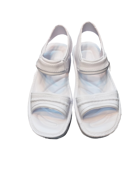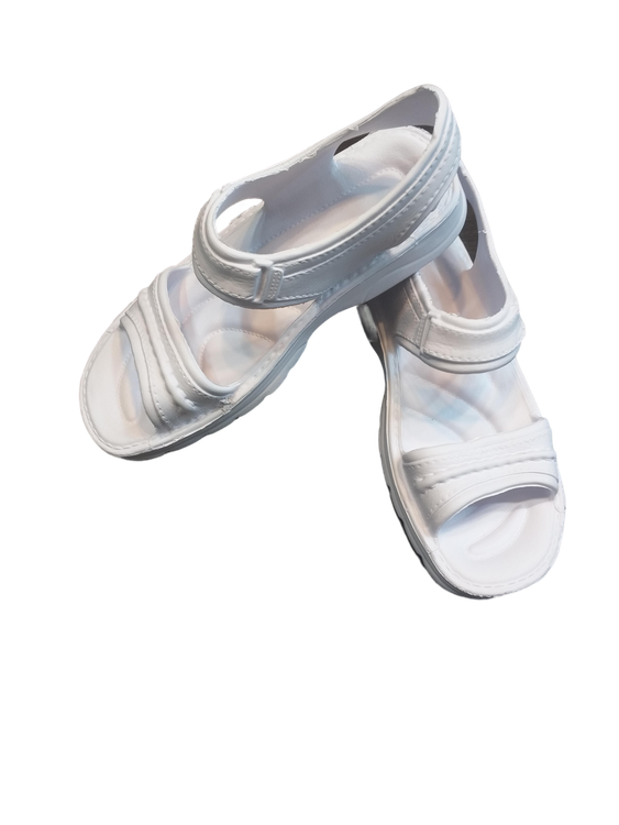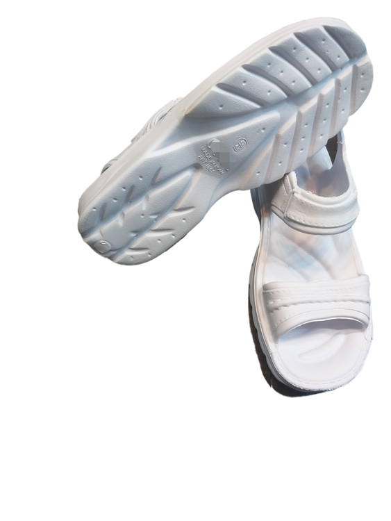 صندل مردانه رکابدار سفید بسیار راحت و با دوام ،کفی آجدار روی پا و پشت پا باز ،داغ نمیشود مناسب پیاده روی حج عمره و تمتع